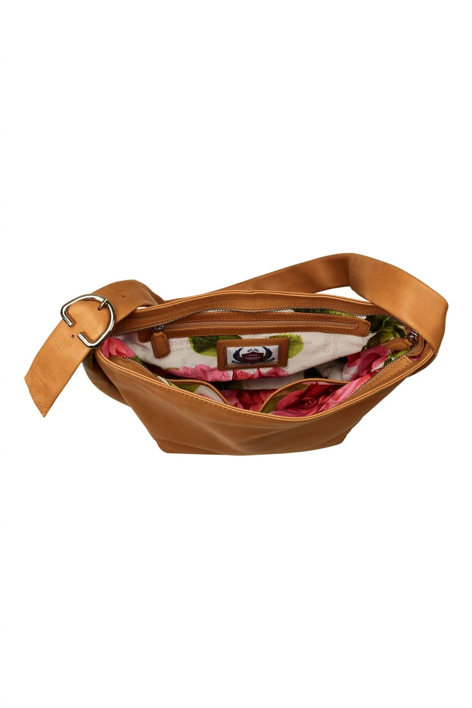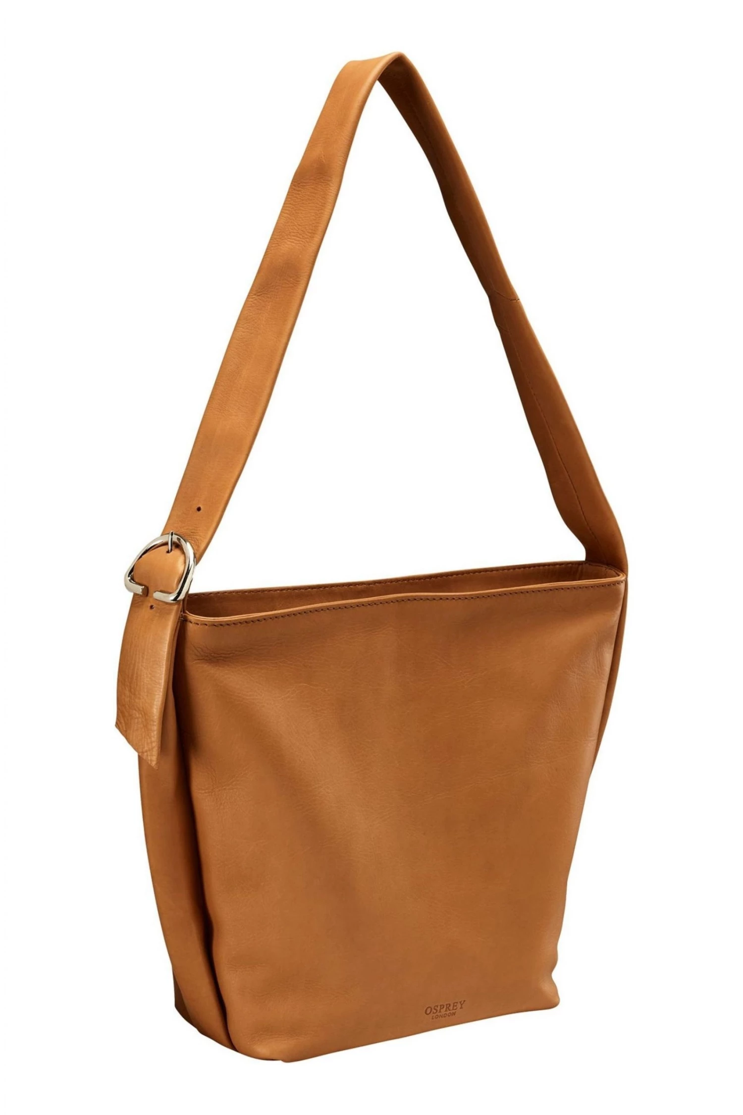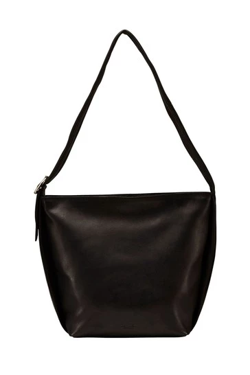 OSPREY LONDON shoulder bag, handcrafted in smart black Grainy Hide leather. The A5-compatible interior features two slip pockets and a zipped pocket. Dimensions: H: 28 x L: 22 x W: 11 cm (30-35cm strap height).