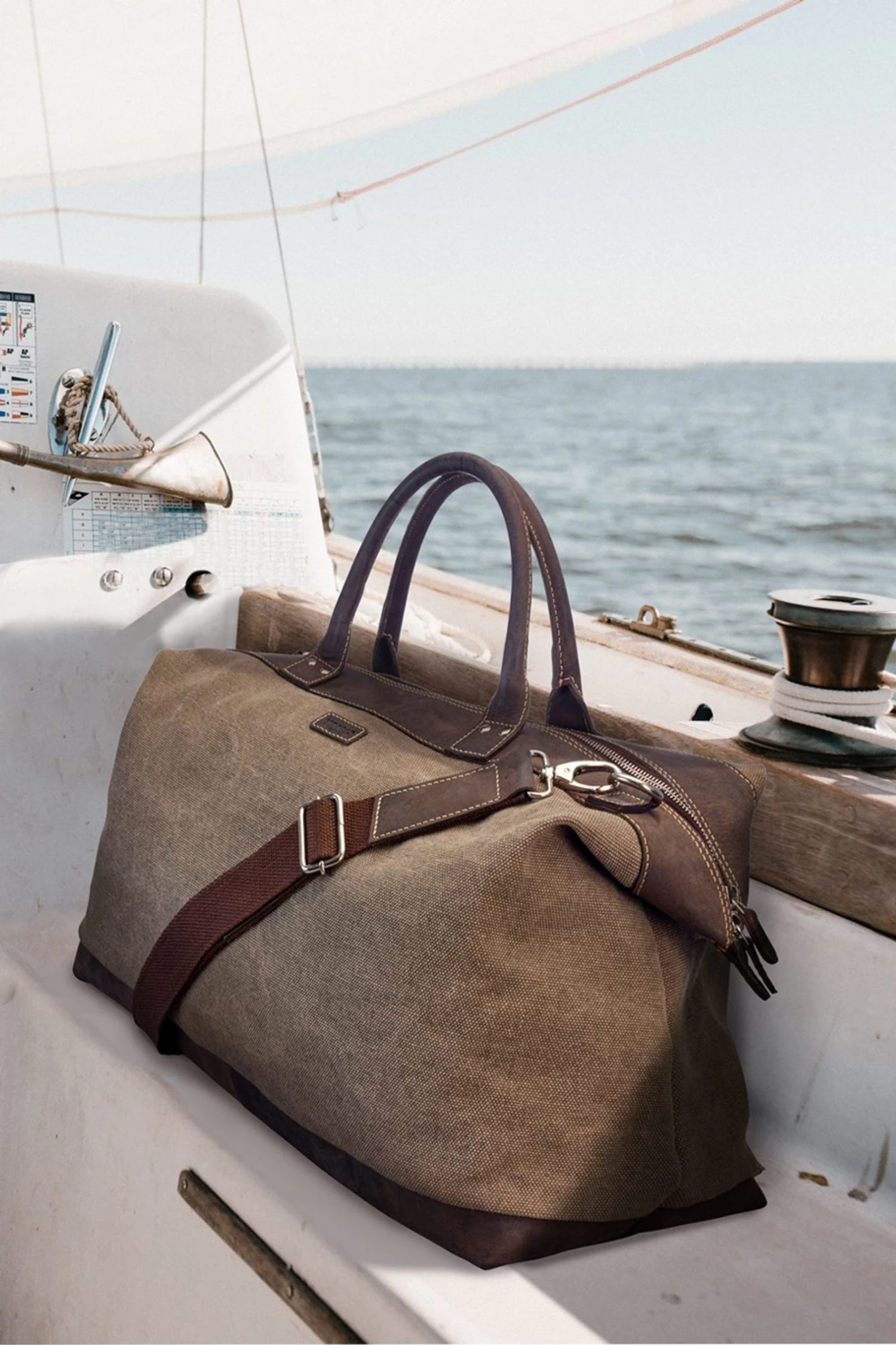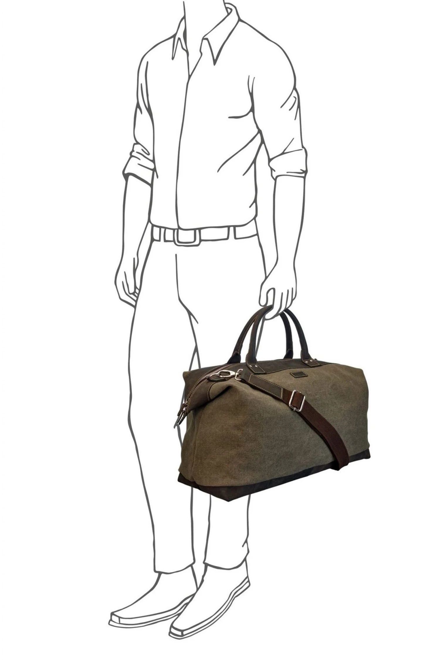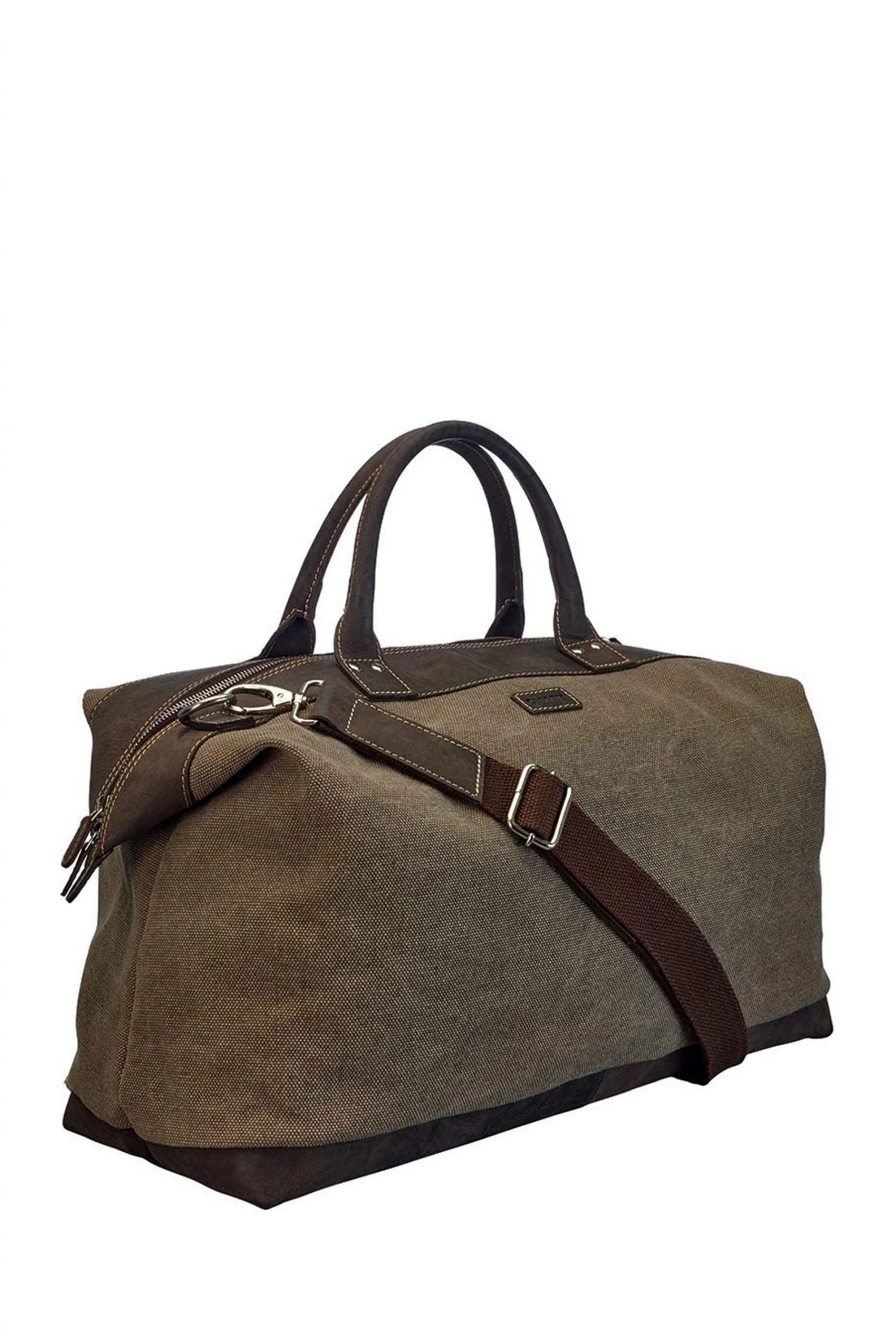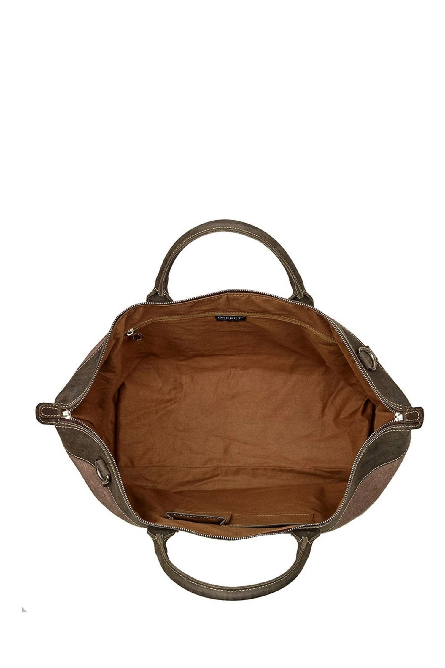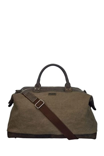 Reasons to love it: Explorer-style travel holdall crafted in robust Canvas & leather with sturdy Canvas Webbing strap. A firm favourite with OSPREY LONDON customers, this large weekender in sturdy Canvas has a traditional feel with characterful chocolate brown Snuffed Grain leather details and a reinforced base with studs. With robust rolled leather top-handles, The Hunter also features a detachable/adjustable Canvas Webbing strap which fixes to bag with solid silver metal dog clips, allowing the bag to be carried in the hand, over the shoulder or across the body as required. Lined in khaki Cotton Twill, the roomy interior has handy leather trimmed pockets to stash your tickets and phone. Out of season, our customers tell us they use The Hunter to store their previous season’s clothing and bedding. Material: Canvas & Snuffed Grain leather. Dimensions: H: 37 x L: 50 x W: 27 cm (11cm handle height) (44–74cm strap height).