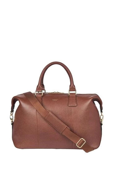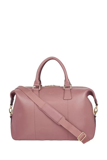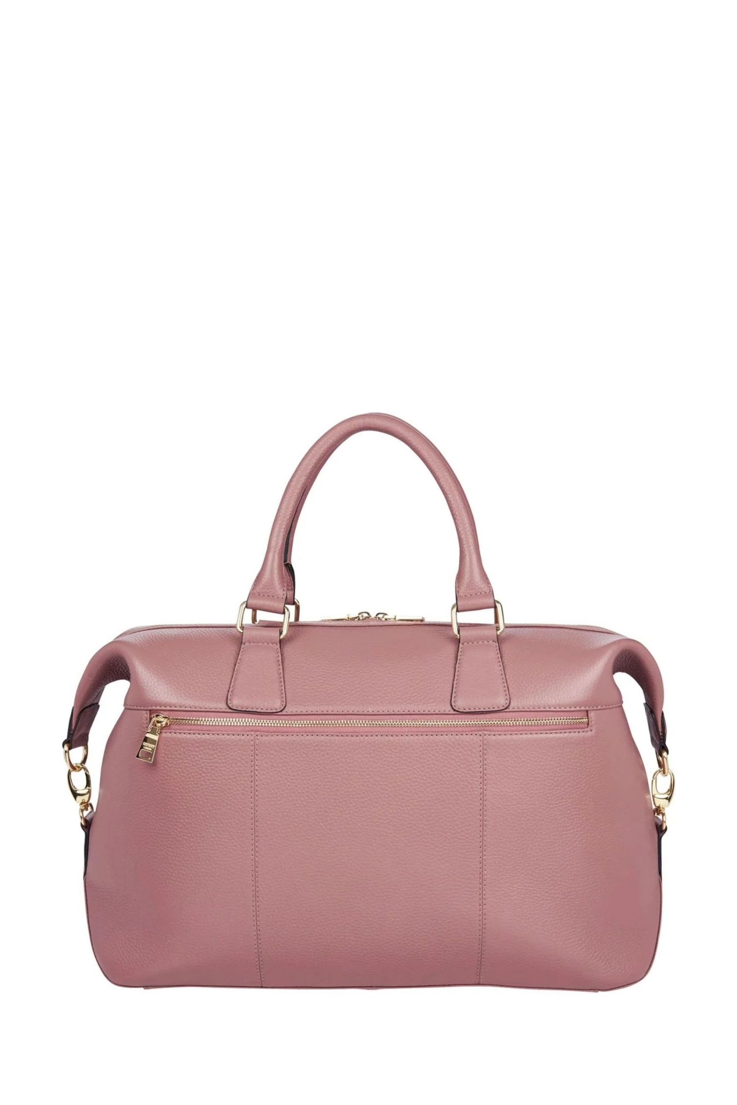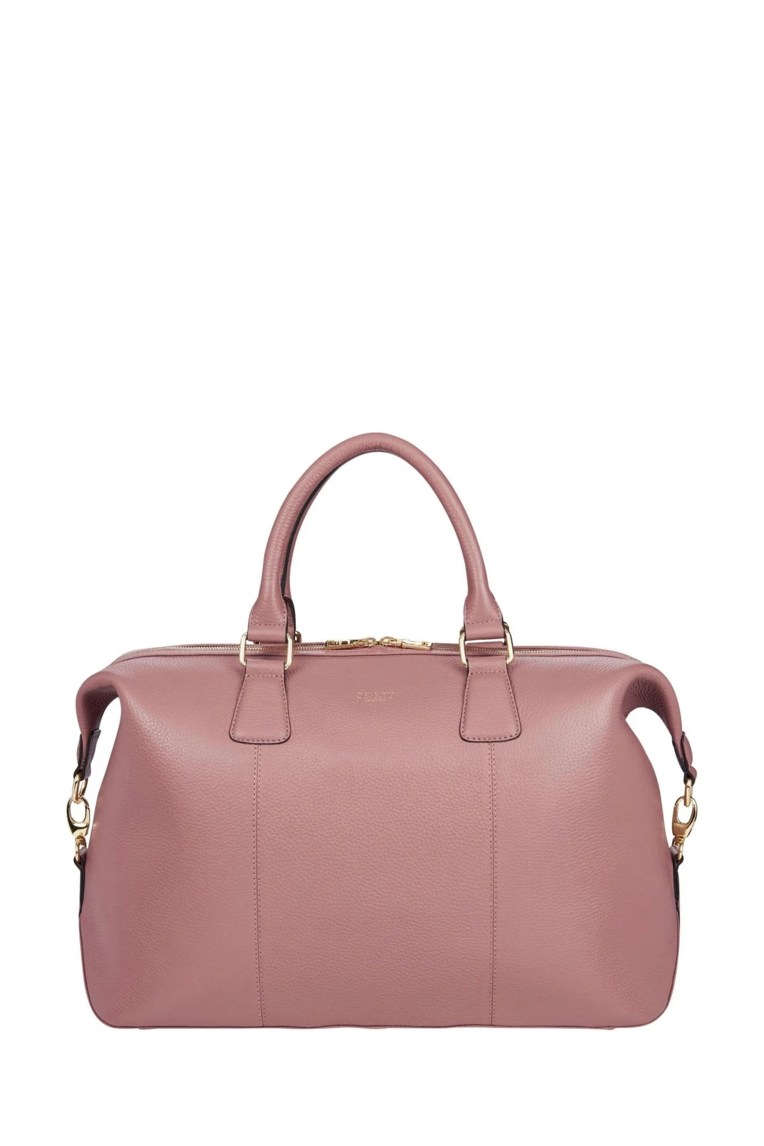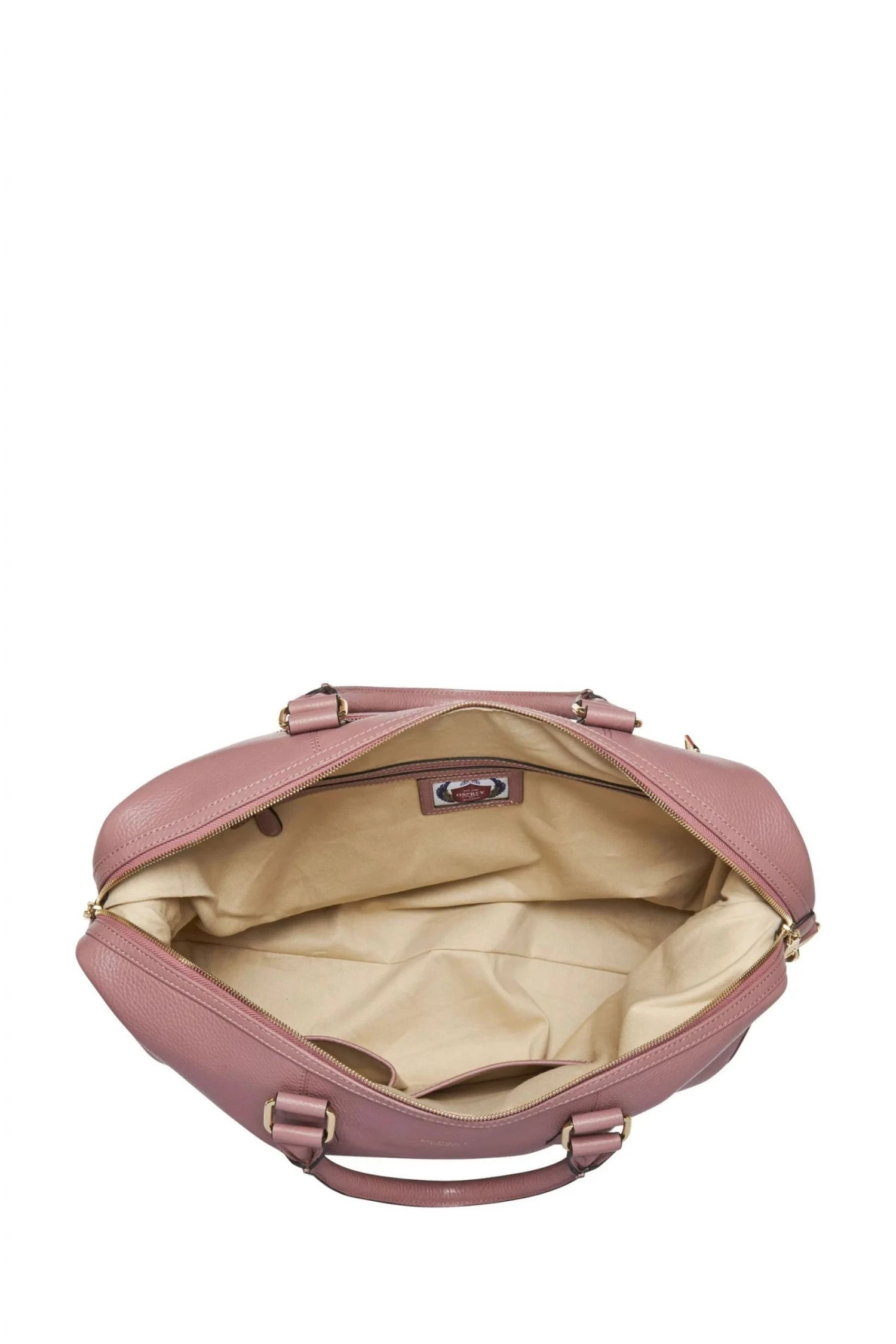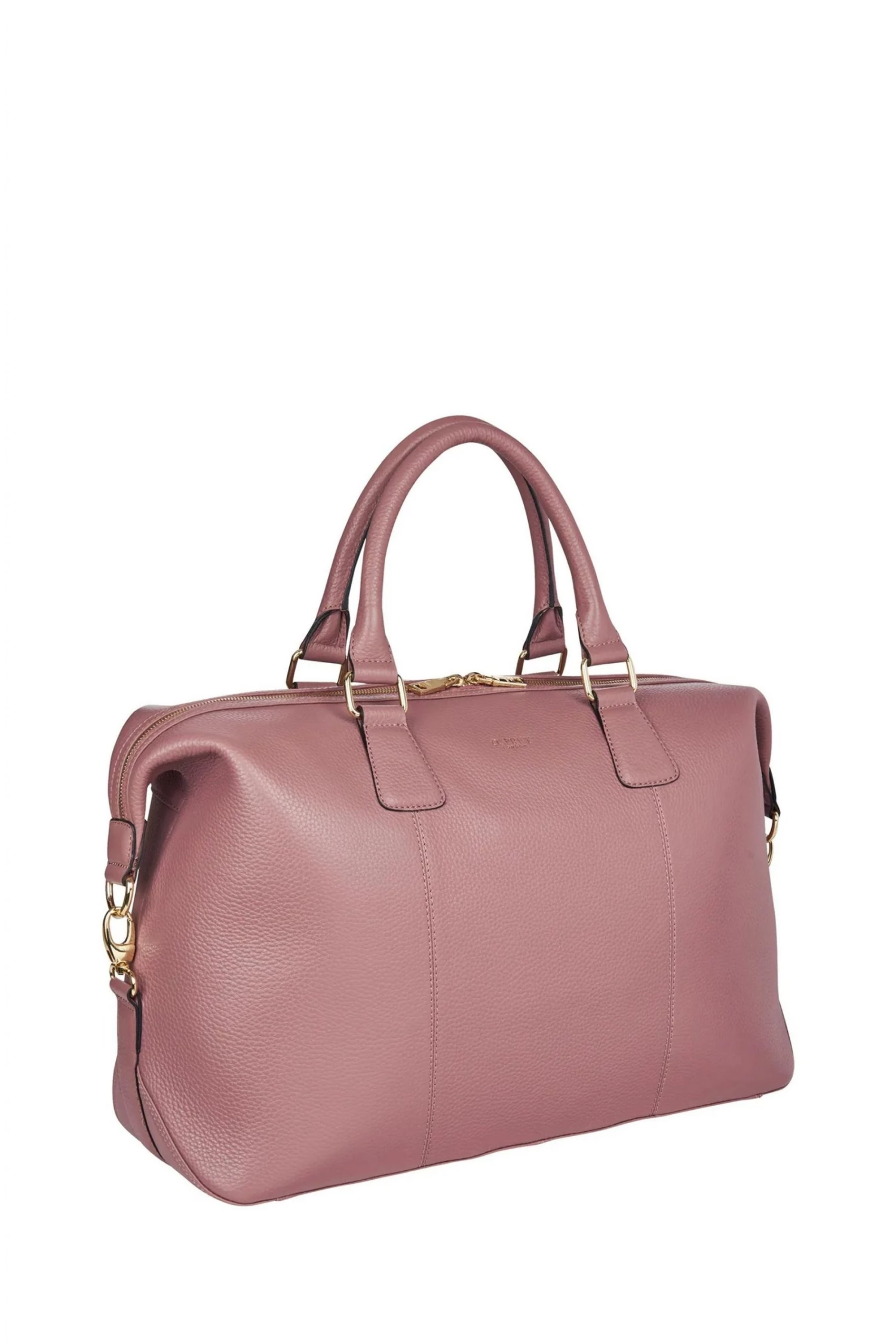 Sleek, structured OSPREY LONDON holdall, handcrafted in Grainy hide leather, with smart self-coloured stitching and gold metal hardware throughout. Features two drop-down rolled leather handles with gold metal rings set on exquisitely shaped leather mounts.