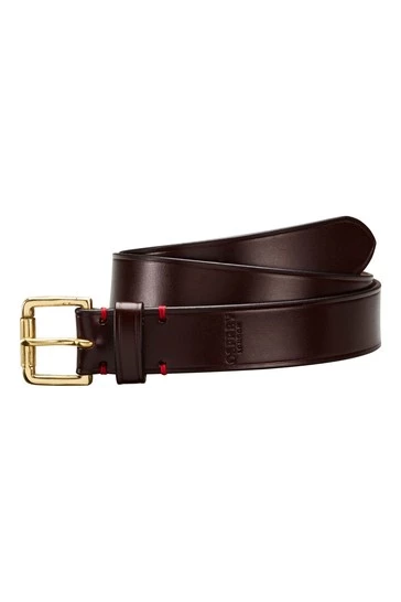 OSPREY LONDON leather jeans belt, 3.5cm wide, handcrafted using traditional saddlery techniques from a single piece of thick, supple, veg tanned Saddle leather in black, with a subtle embossed linear design that runs along the edge.