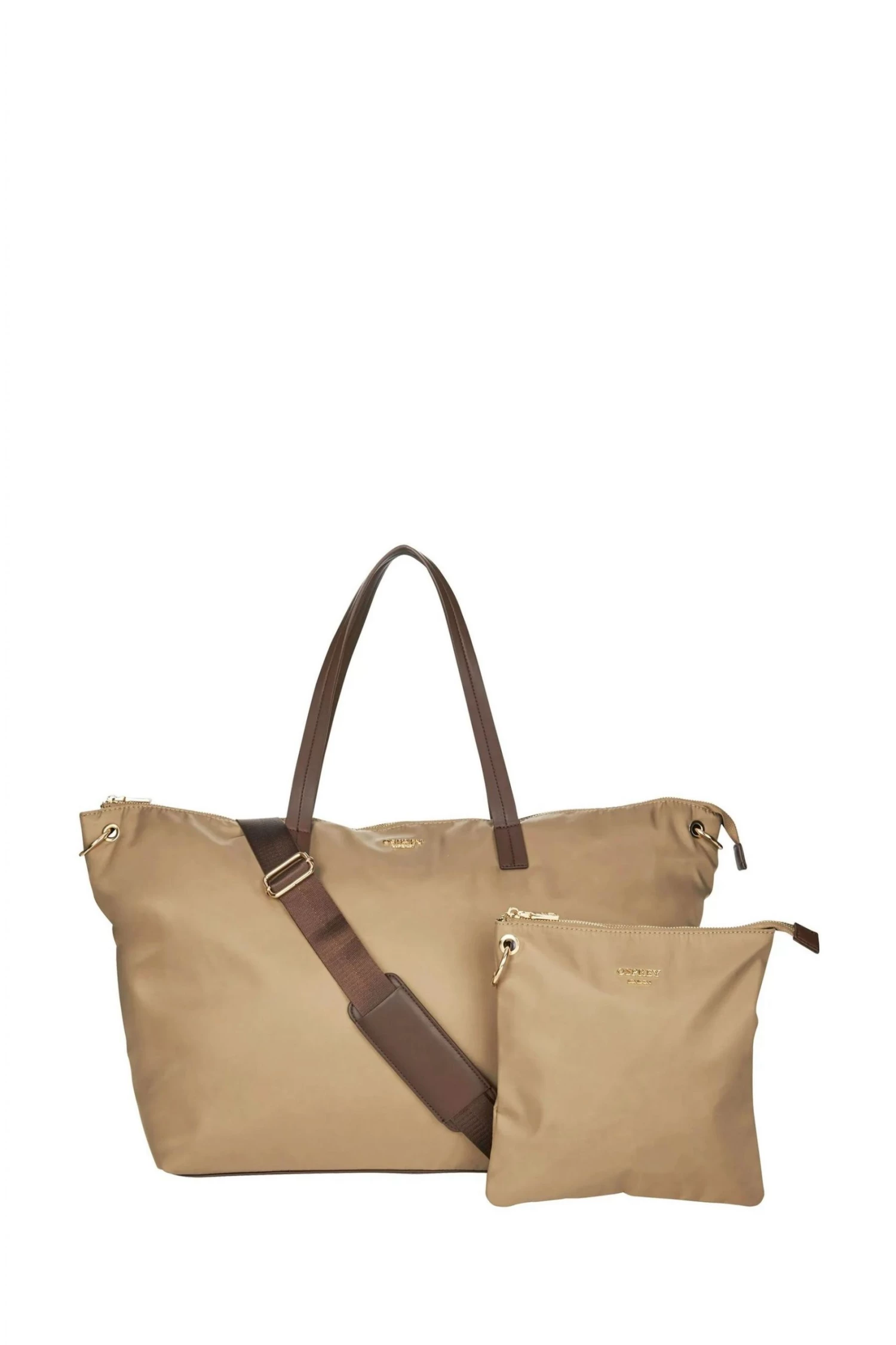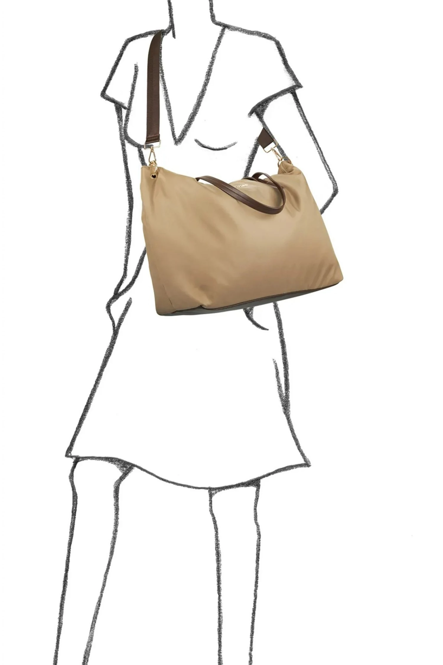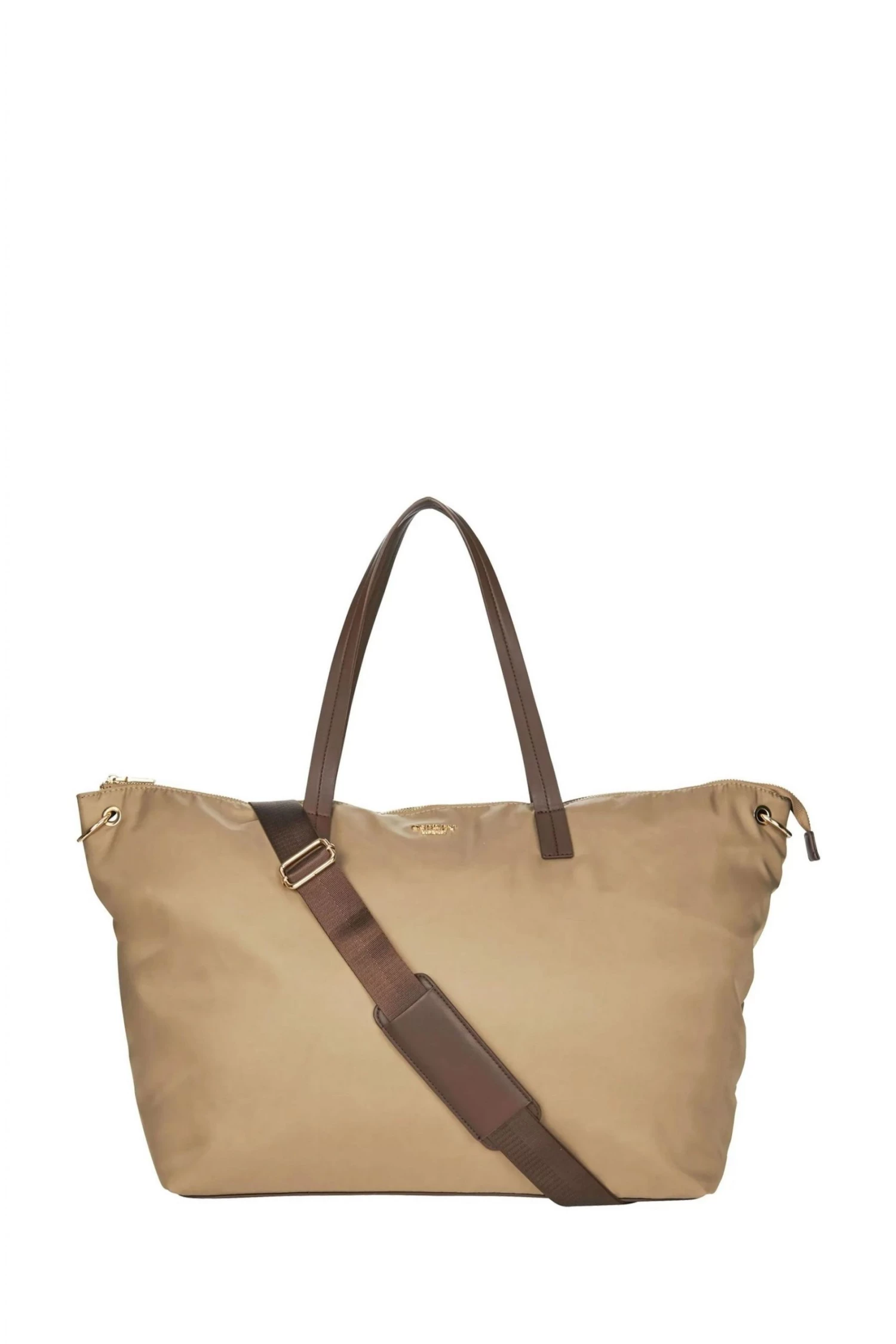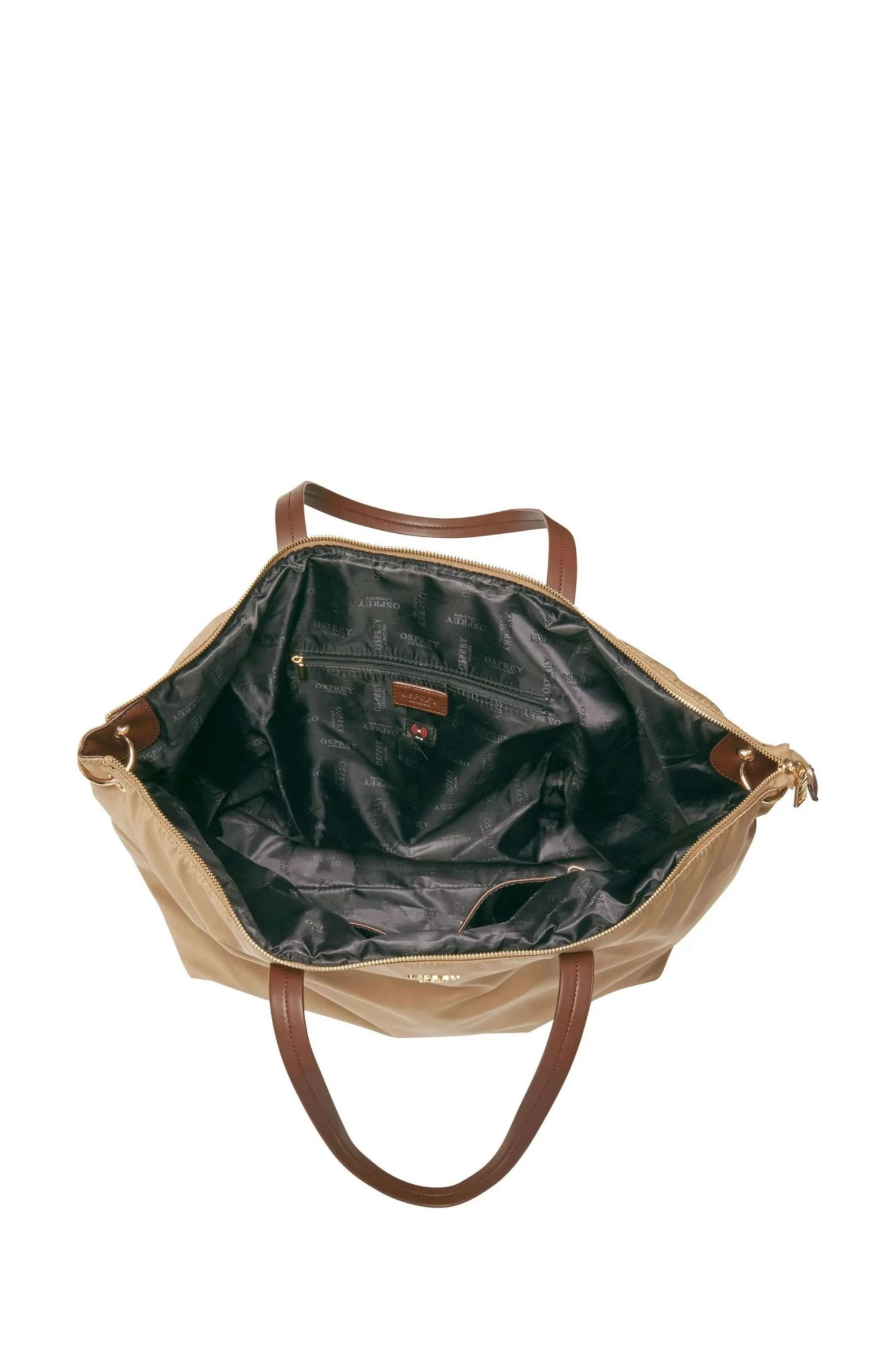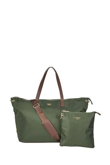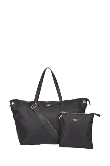 Spacious and lightweight Osprey London holdall, crafted in nylon with a faux leather trim, branded on the front with the Osprey London logo in statement gold-tone metal lettering.
