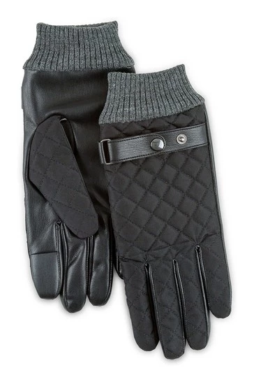 The quilted gloves feature a full ribbed cuff and wrist strap with stud detailing, are half lined for extra warmth and have our invisible Smartouch technology.