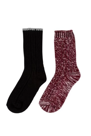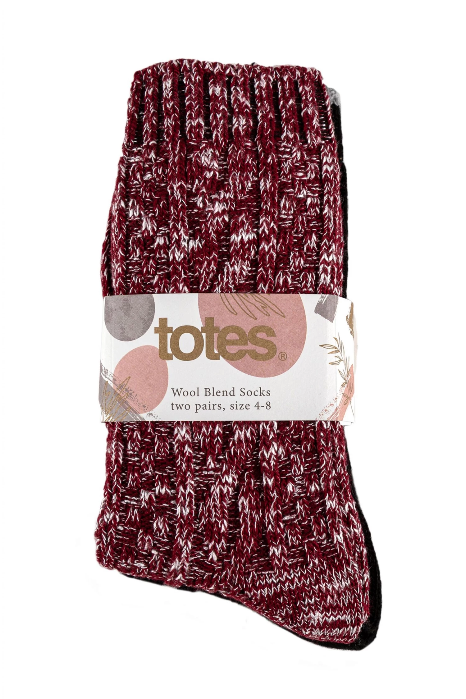 Pack of 2 Totes Ladies Wool Blend Socks in Black and Burgundy. Due to the wool blend socks are hand wash only.