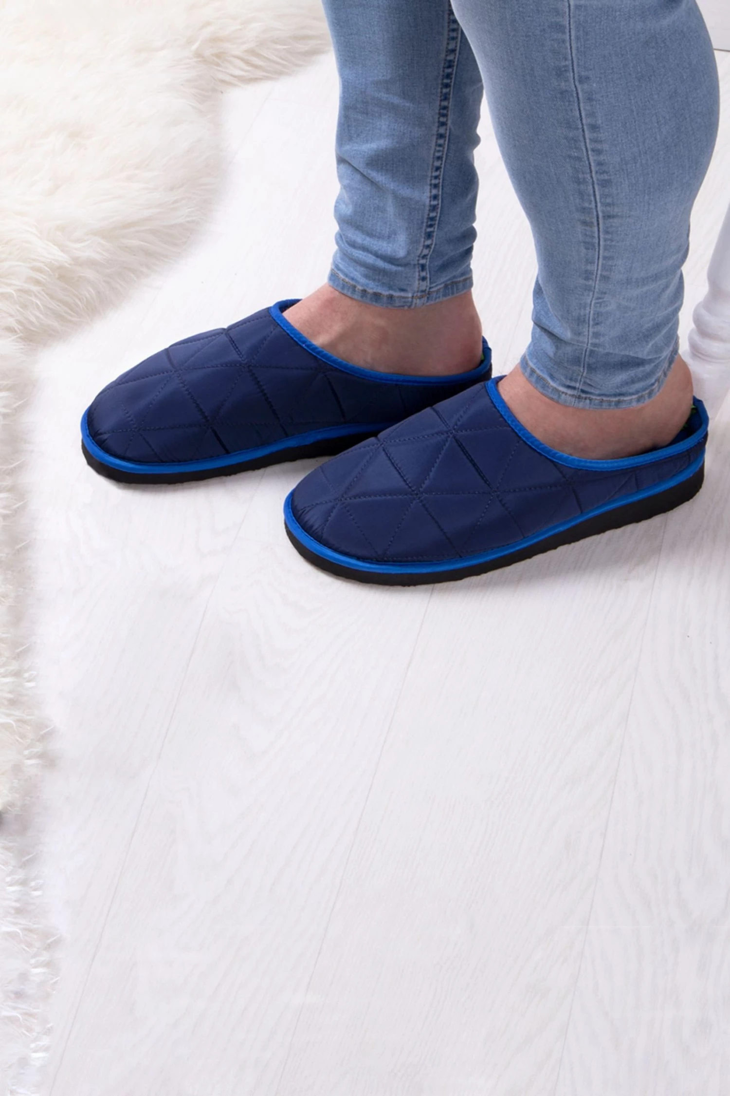 New to totes, These Mens Premium Quilted Slippers feature Fleece Lining, Quilted Polyester Design and a EVA Sole for Extra Comfort.