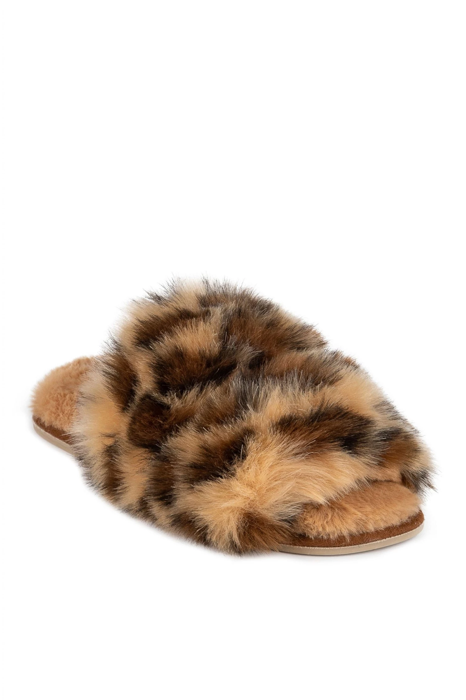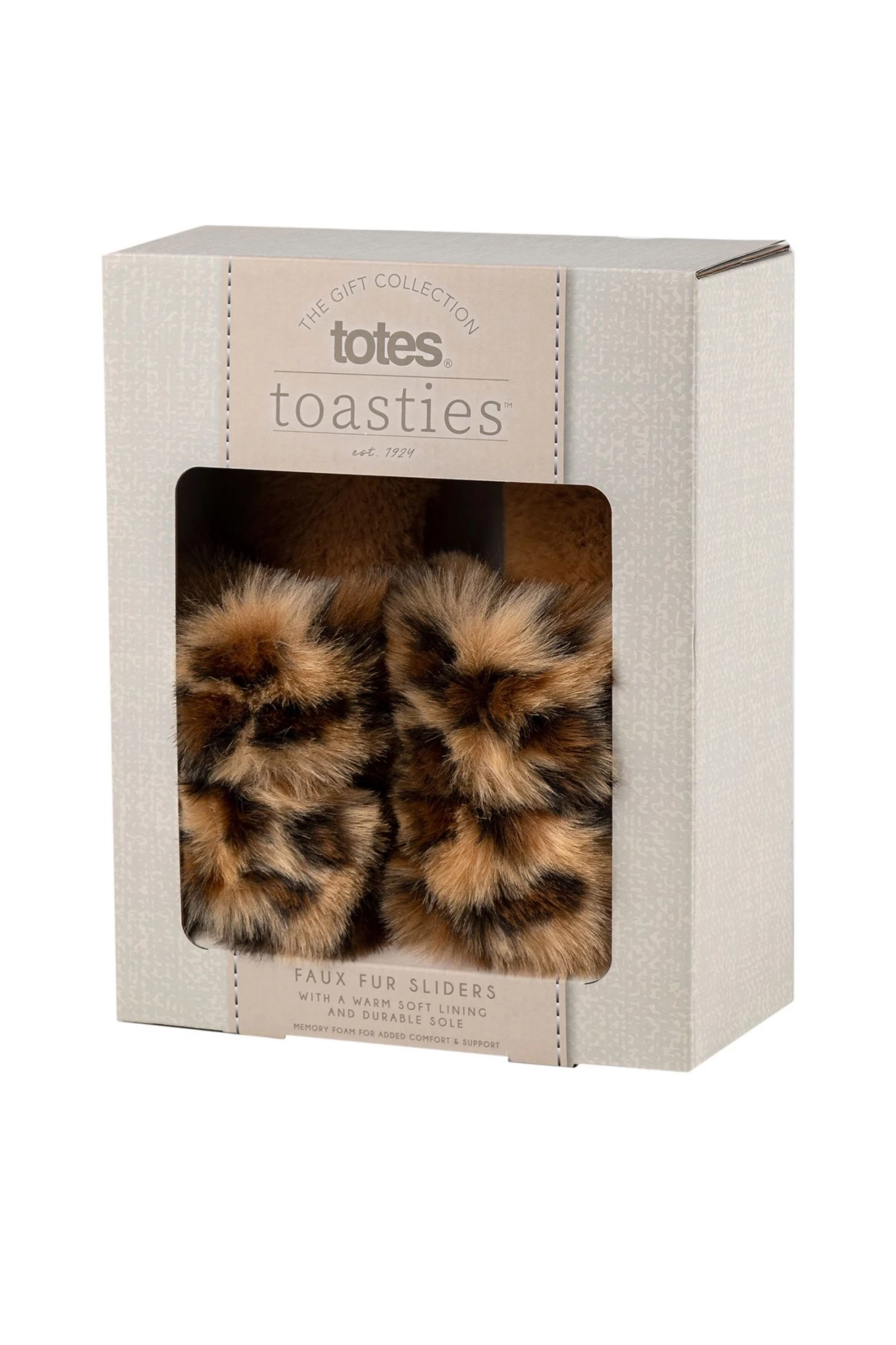 New to totes this season, our totes Ladies Faux Fur Animal Double Strap Slider Slipper is available in a stylish Brown Leopard Print, Warm & Cosy Faux Fur Lining and Durable Sole.