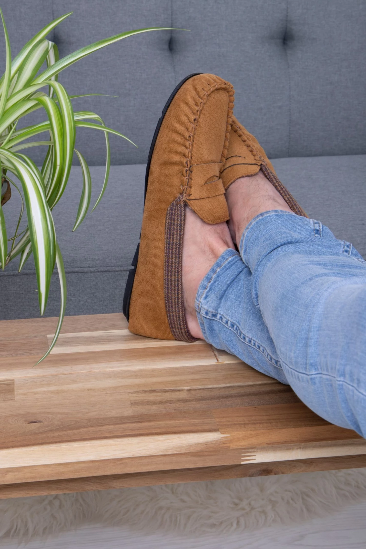 Our totes Mens Suedette Moccasin Slippers With Check Lining make a great addition to your winter wardrobe! Featuring Warm & Cosy Check Lining, Memory Foam and a Durable Sole.