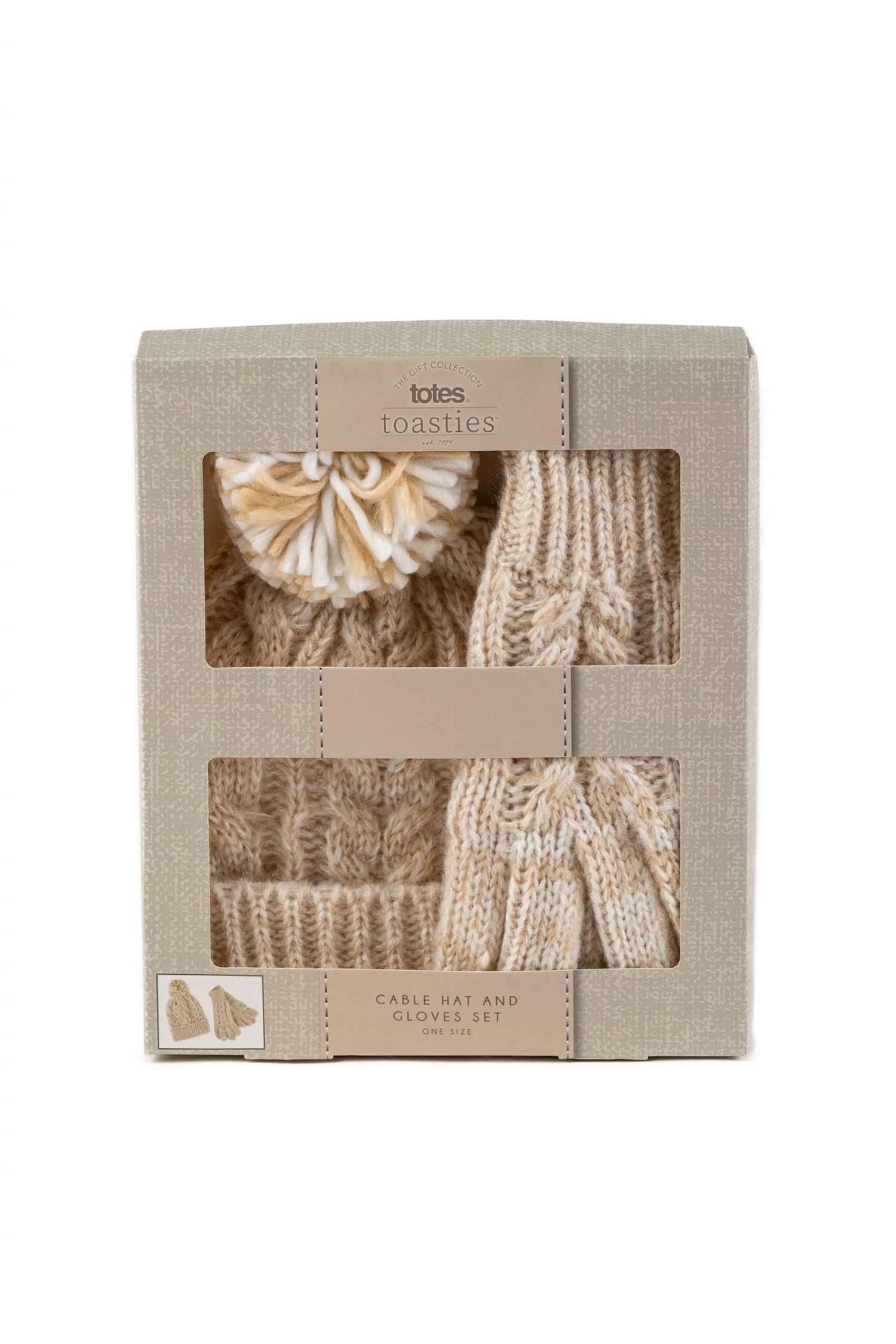 New this season, our totes Ladies Cold Weather Set is perfect to keep you warm this season! Featuring Cable Knit Design Hat with Pom Pom Detail and Gloves. Already Packaged for a perfect Gift!.