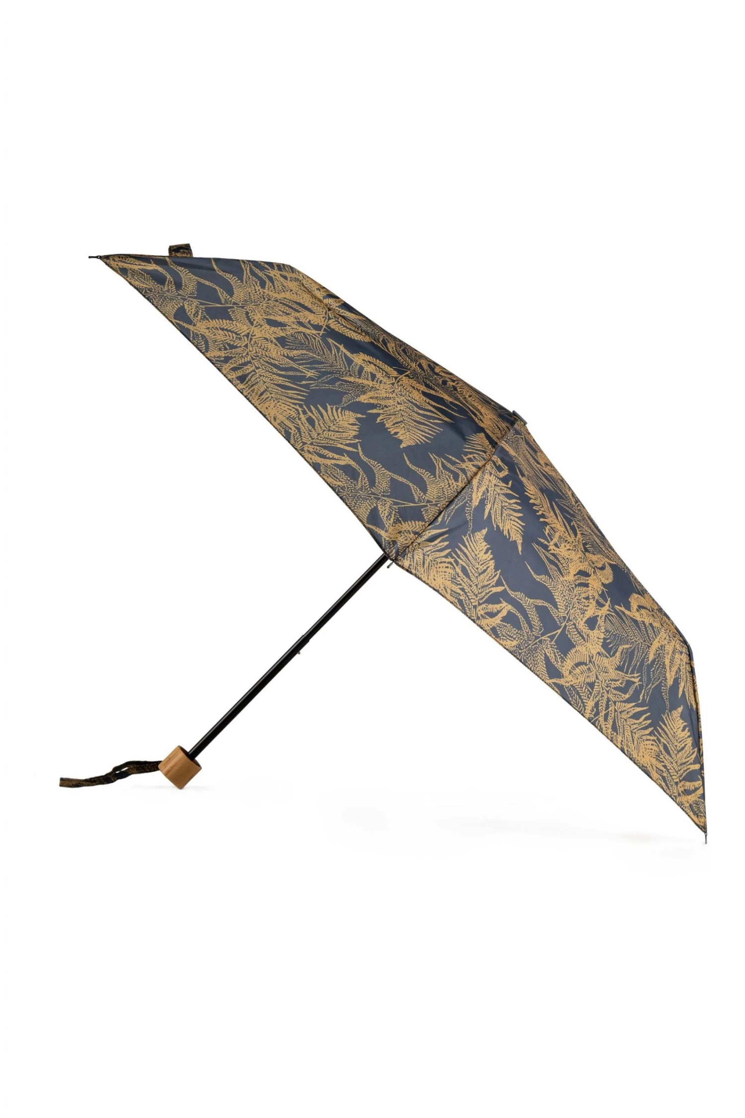 An easy to use, steel-framed flat folding umbrella available in a trendy Fern Leaves print, each with matching handles and a handy co-ordinating cover. Strong gusts can damage your umbrella. To reduce this risk carry your umbrella facing the wind. Always leave your umbrella open until completely dry. Use plain water to clean your canopy as detergents may affect the water repellent. Do not leave in direct sunlight.
