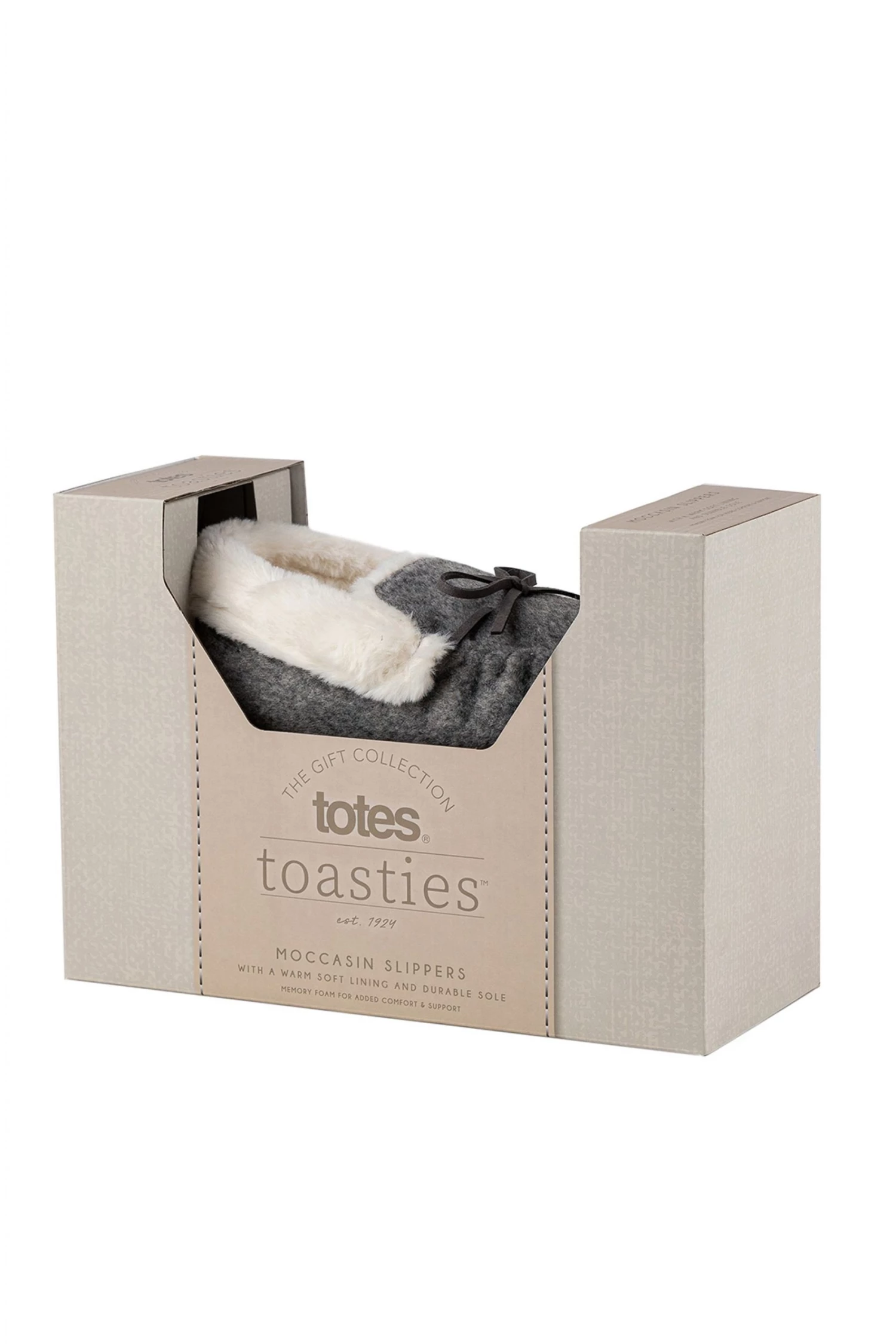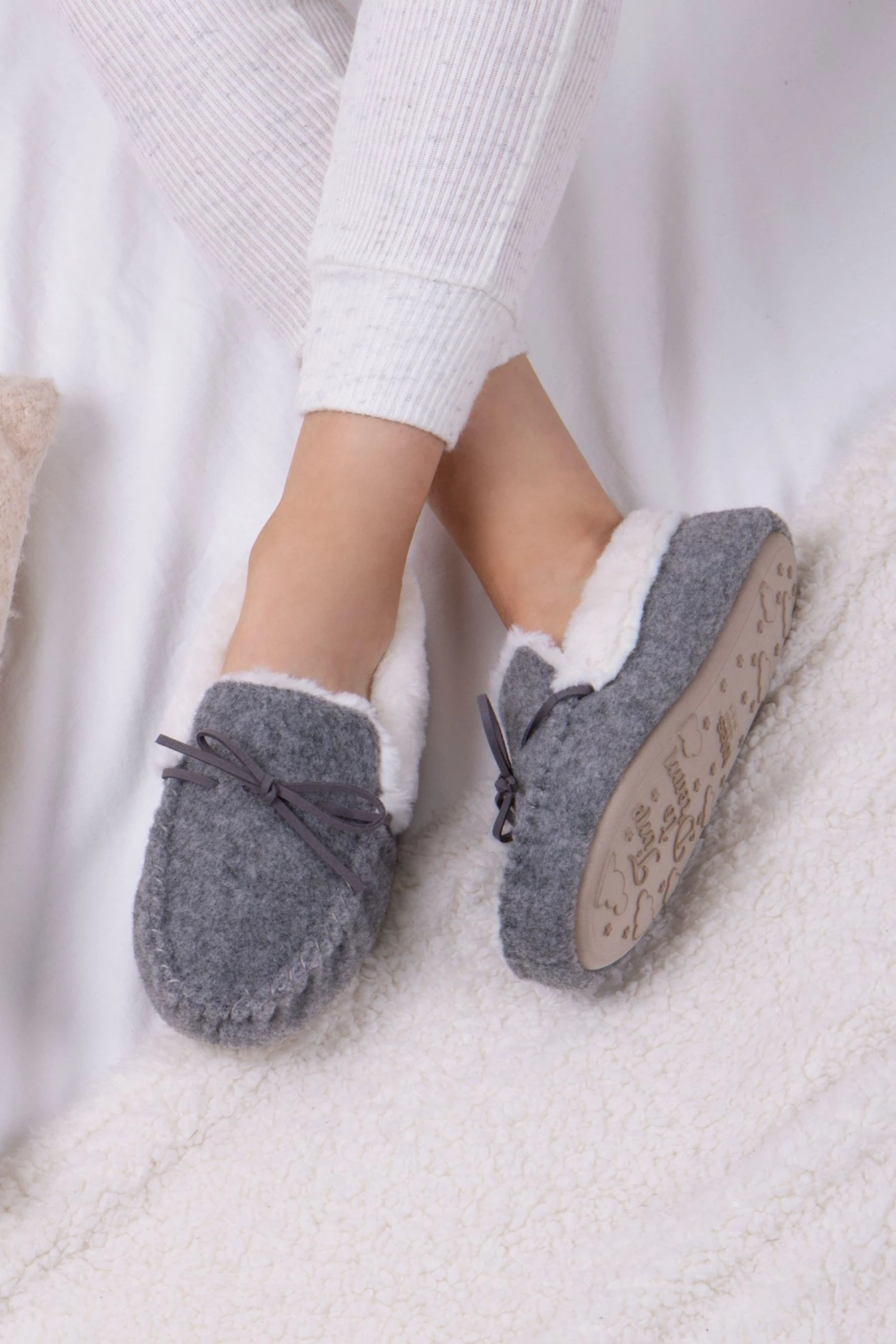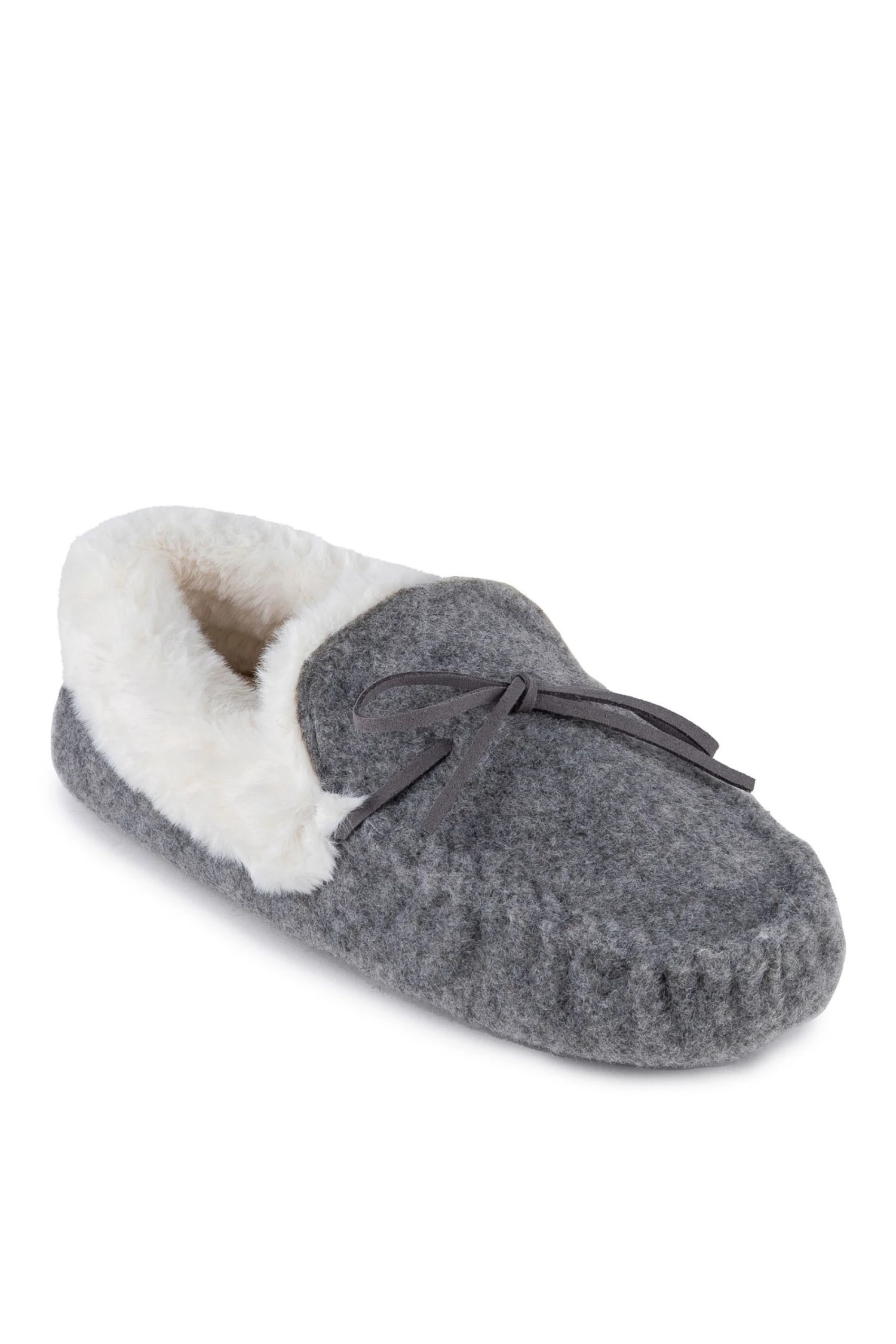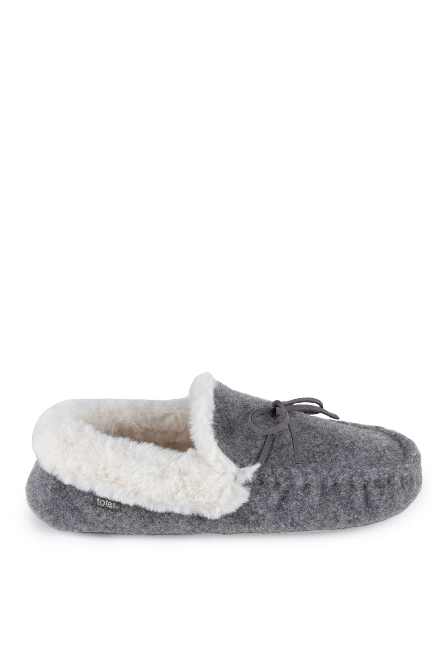 Our totes Ladies Felt Moccasin Slippers feature Soft Felt uppers, Warm Faux Fur Lining and Memory Foam for ultimate comfort. Available In Grey or Pink.