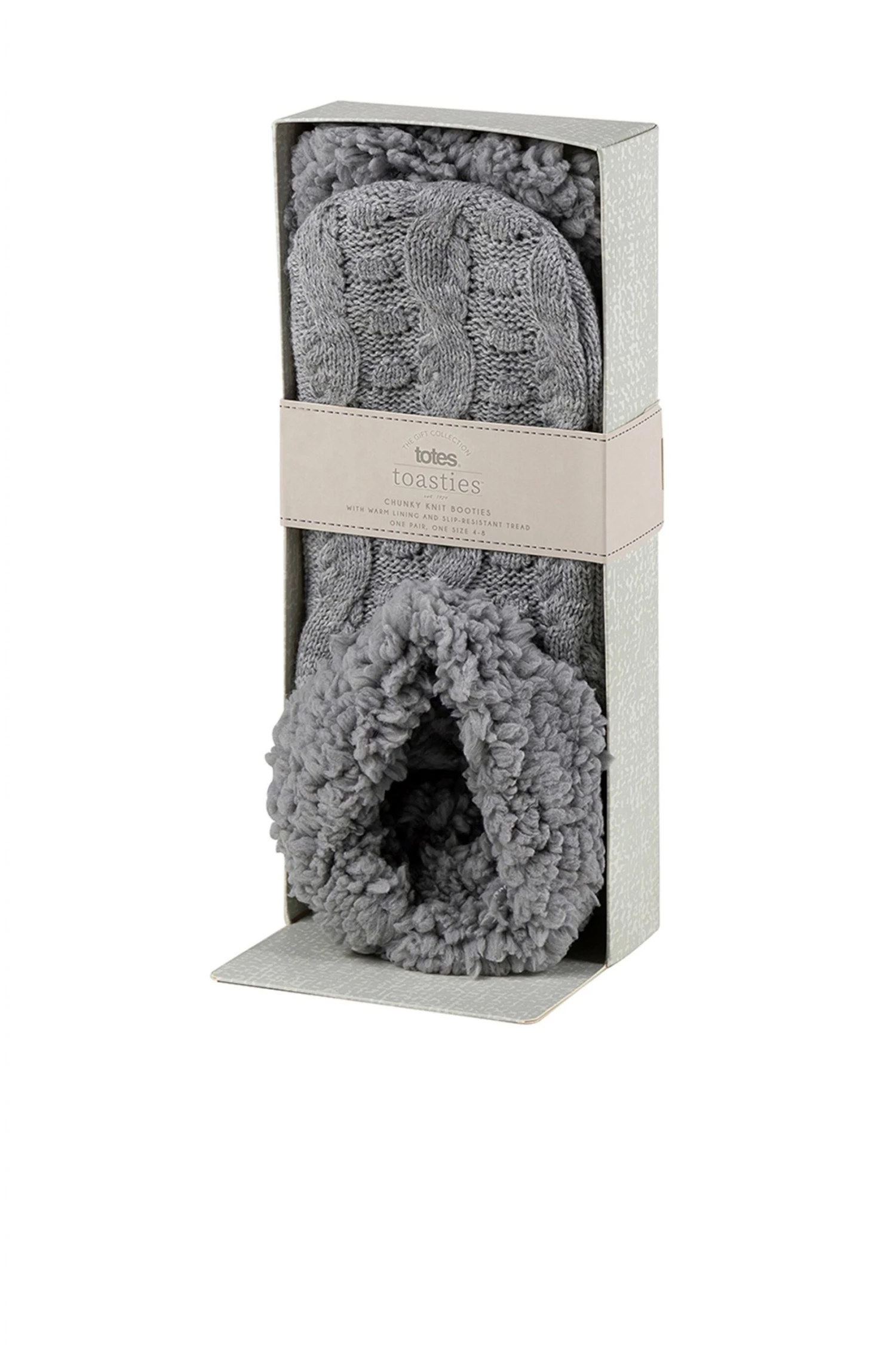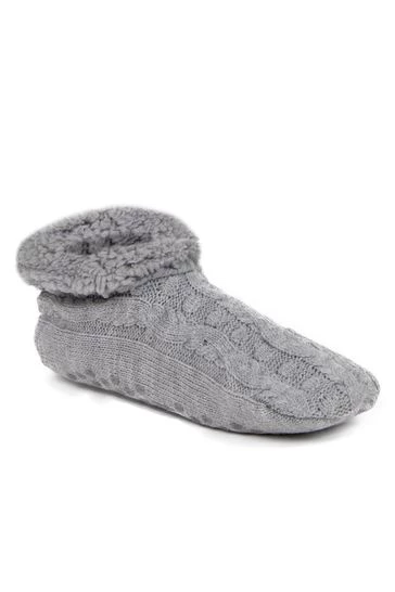 New this season, our Ladies Bootie Slipper features a Hand-knit design with faux fur cuff and Warm & Cosy Lining.