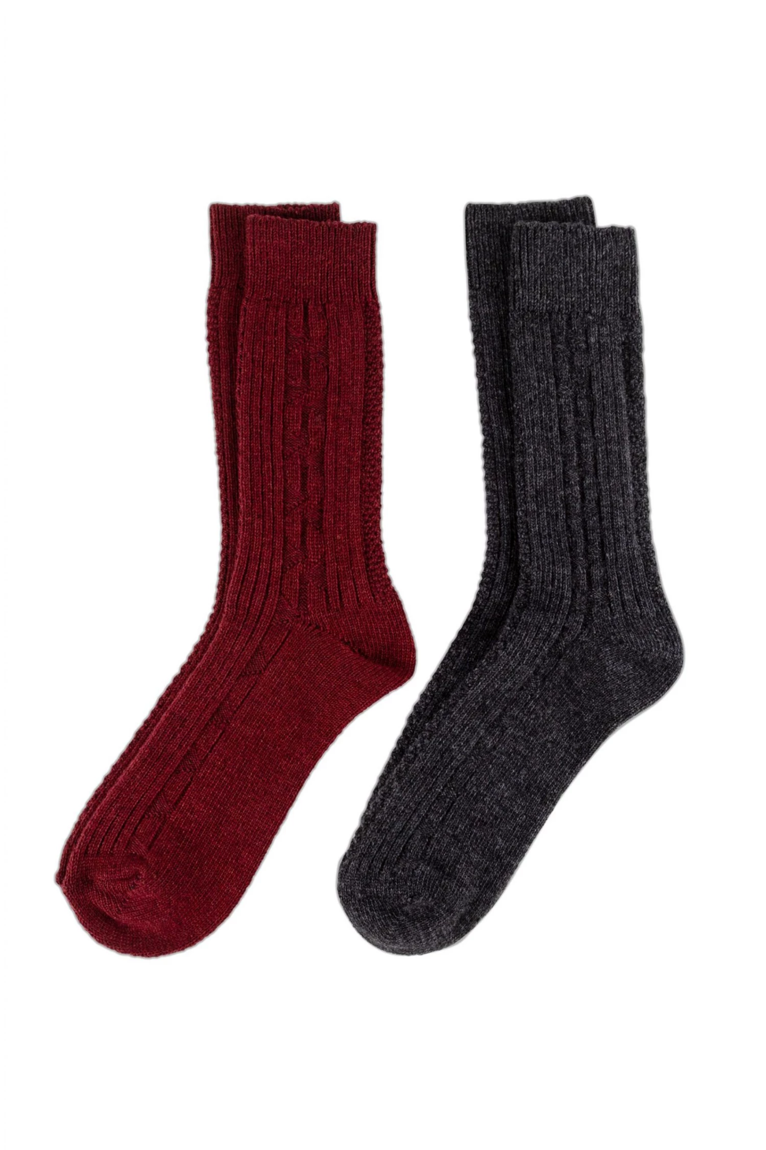 These totes Mens Twin Pack Cable Knit Wool Blend Socks feature a Burgundy/Charcoal Design, One Size fit and Warm & Cosy Lining. Already packaged, these make a great gift.