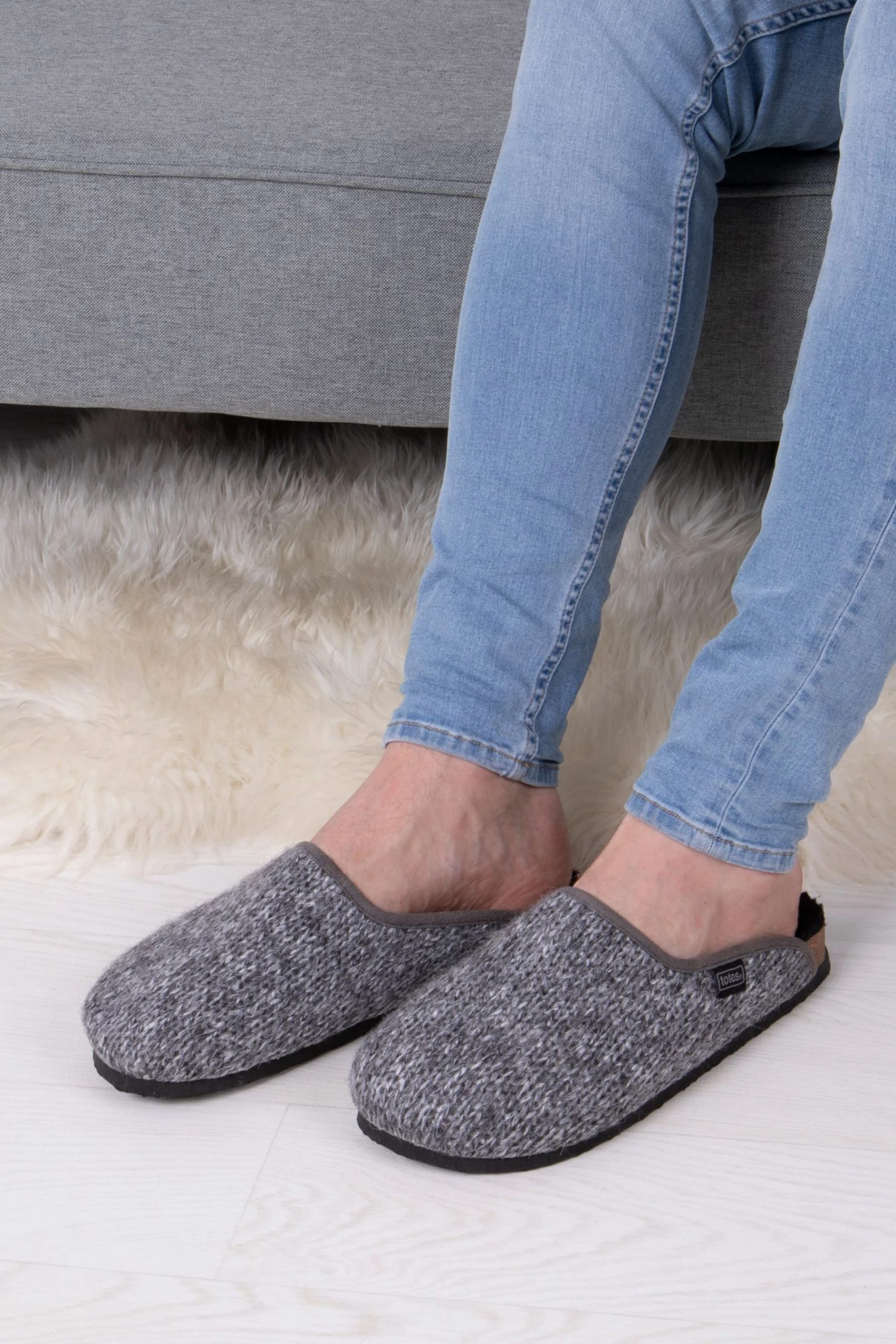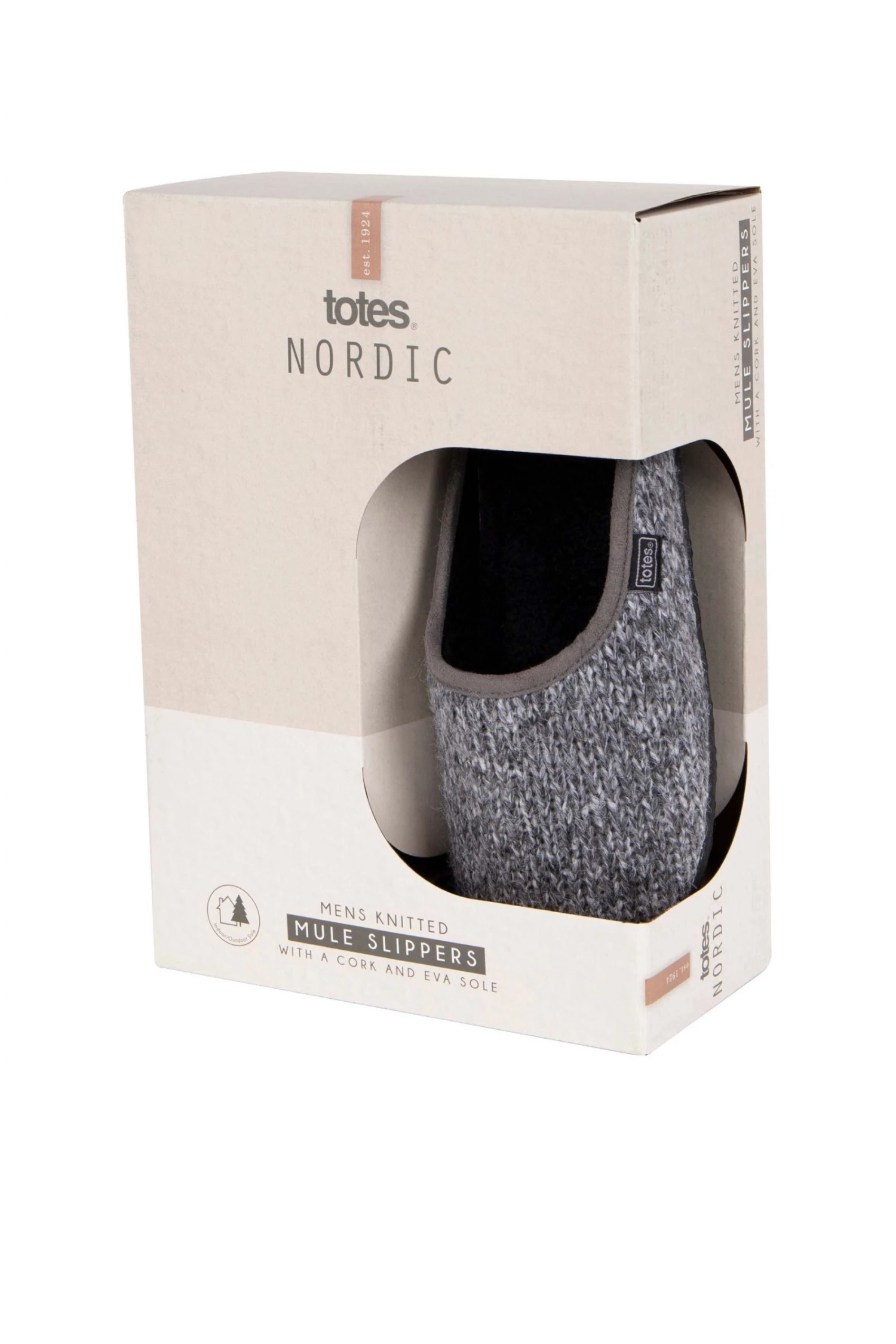 New this season, our totes Mens Knitted Mule Slipper with Cork and Eva Sole feature a Borg Molded Lining and foot bed, EVA Sole for comfort and a Knit and Felt Upper.