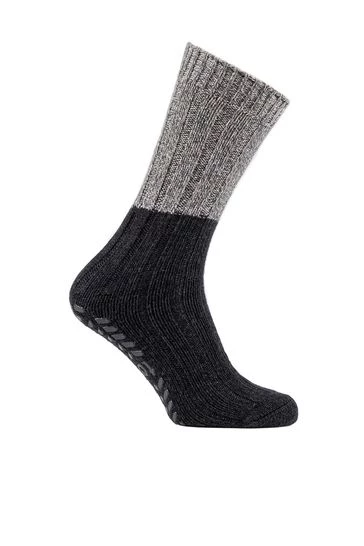 Totes Grey Mens Natural Wool Blend Slipper Sock With Tread