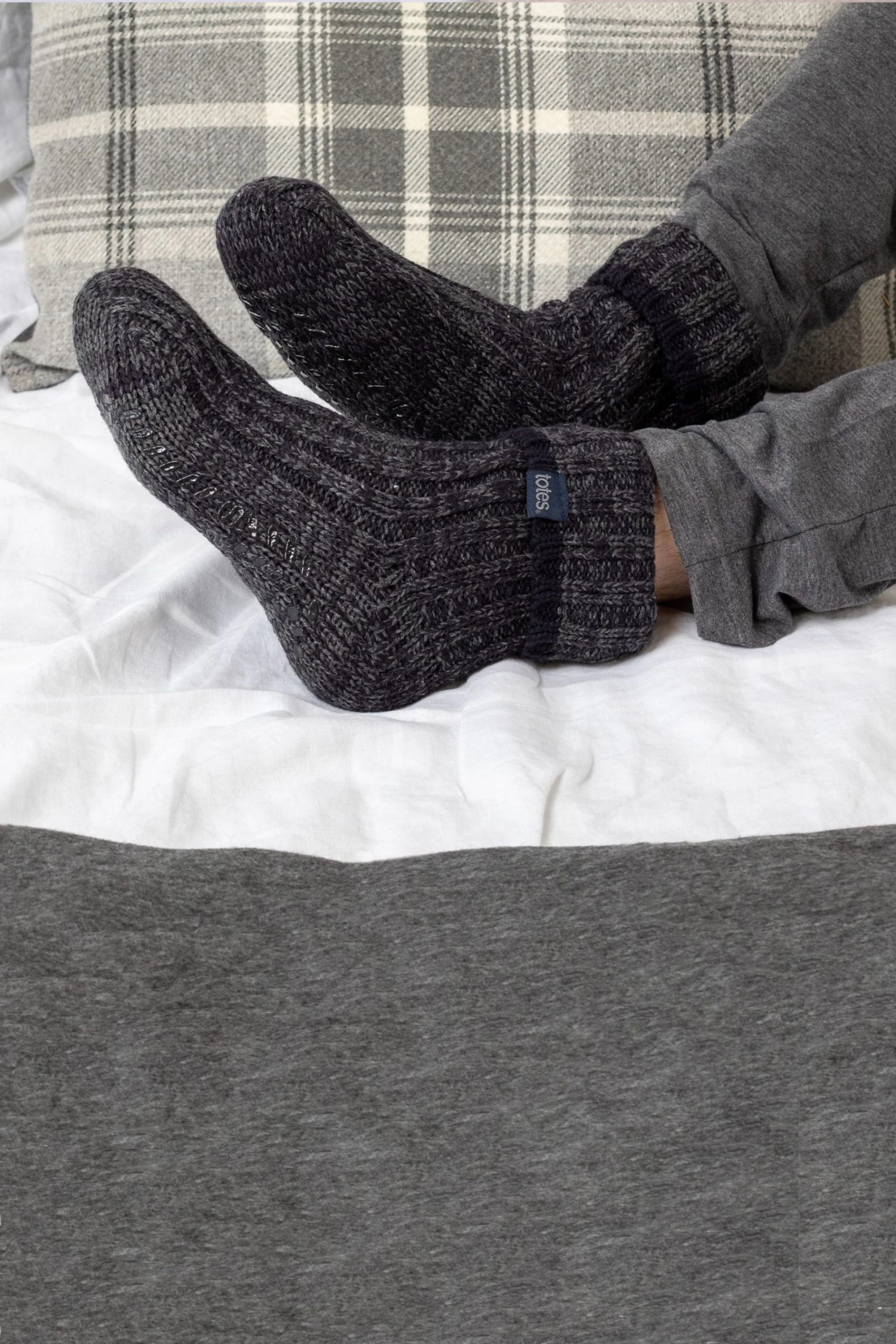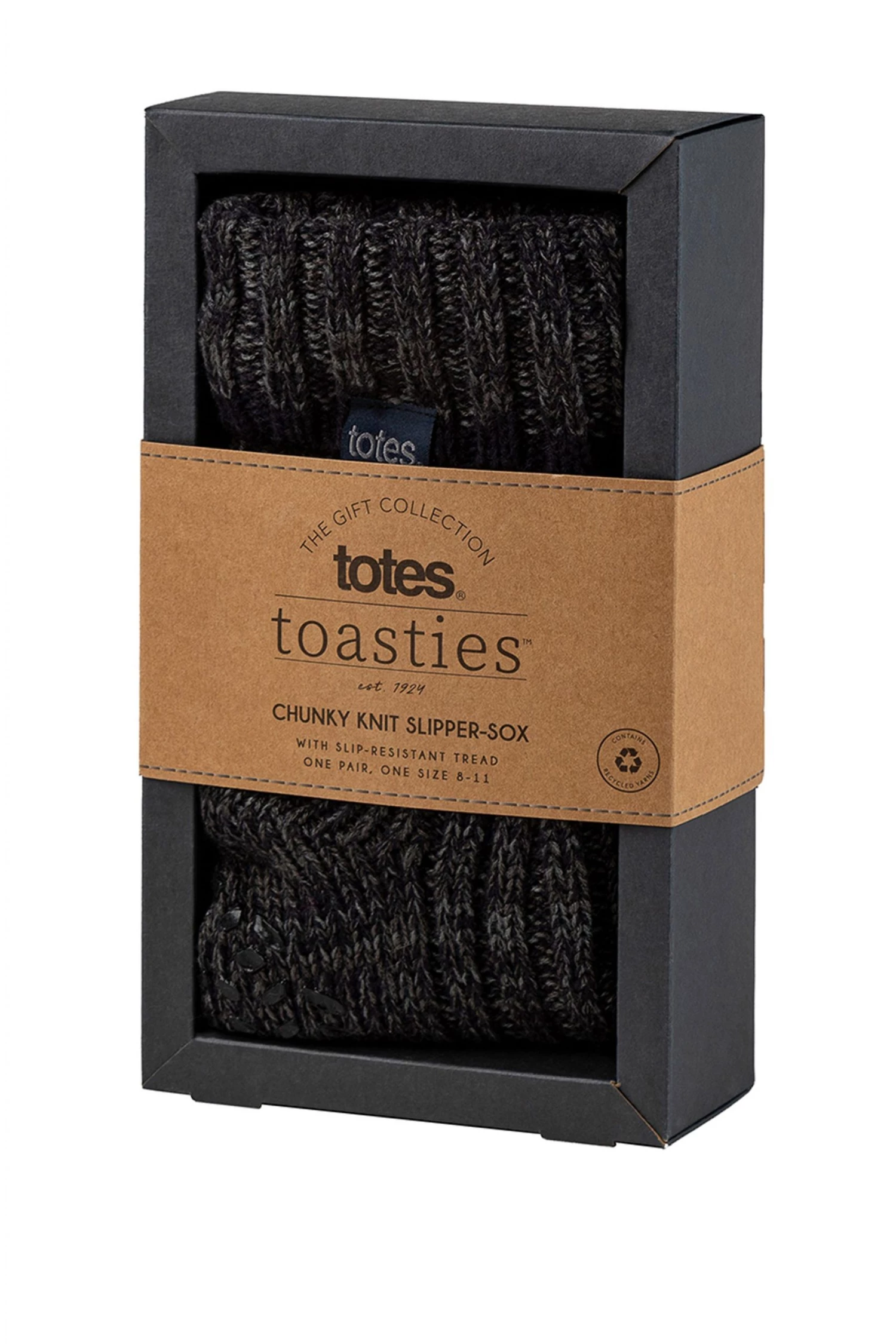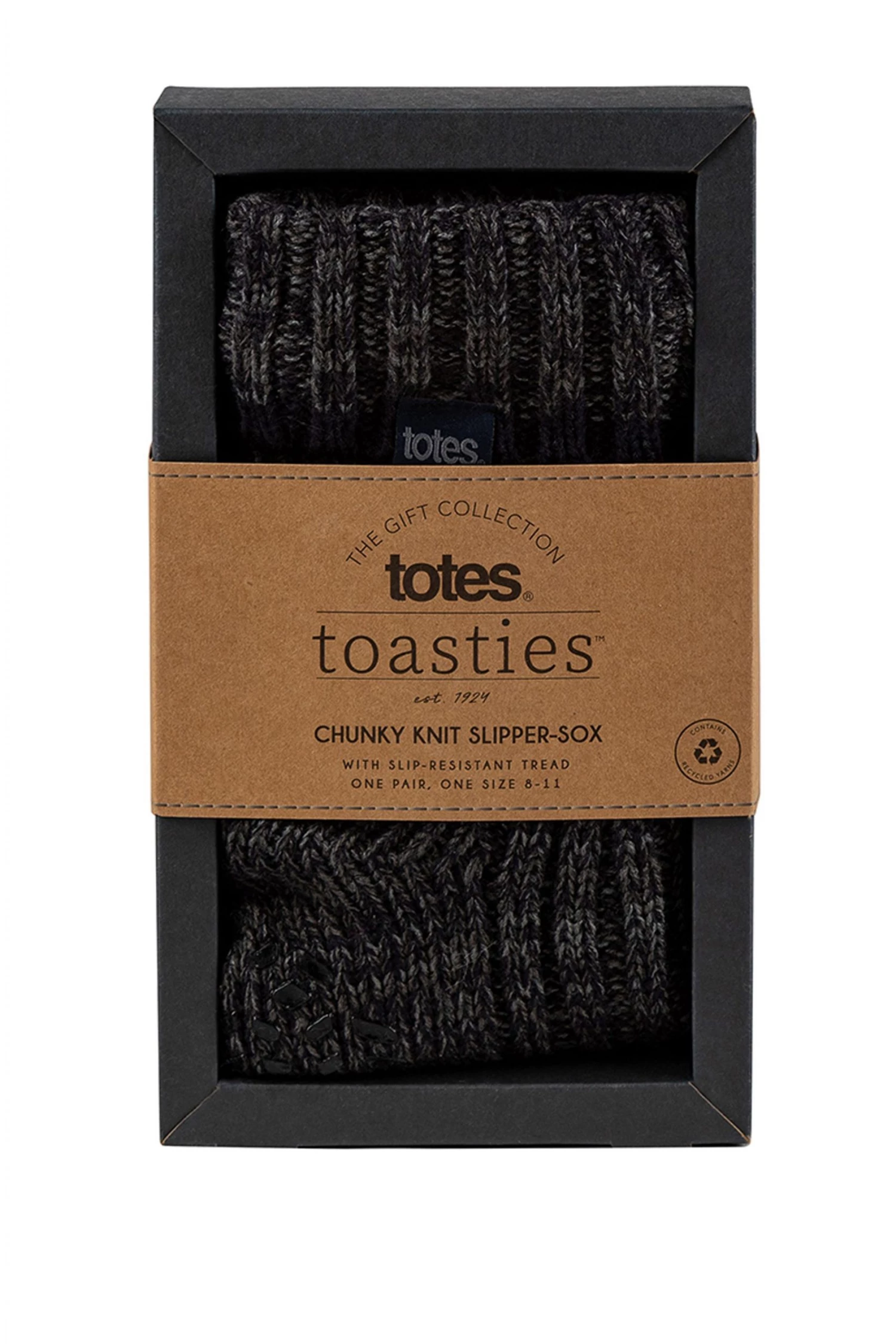 This season our totes Mens Chunky Slipper Socks are made from Recycled Acrylic Knit and Polyester Fleece Lining. These socks feature a Warm & Cosy Fleece Lining, Slip-Resistant Tread and are One Size.