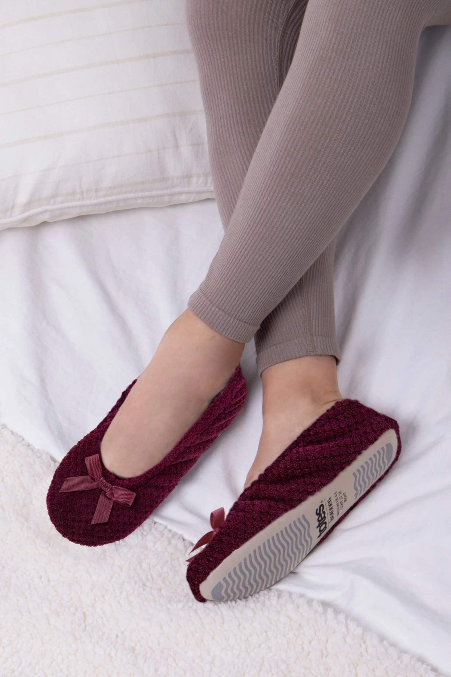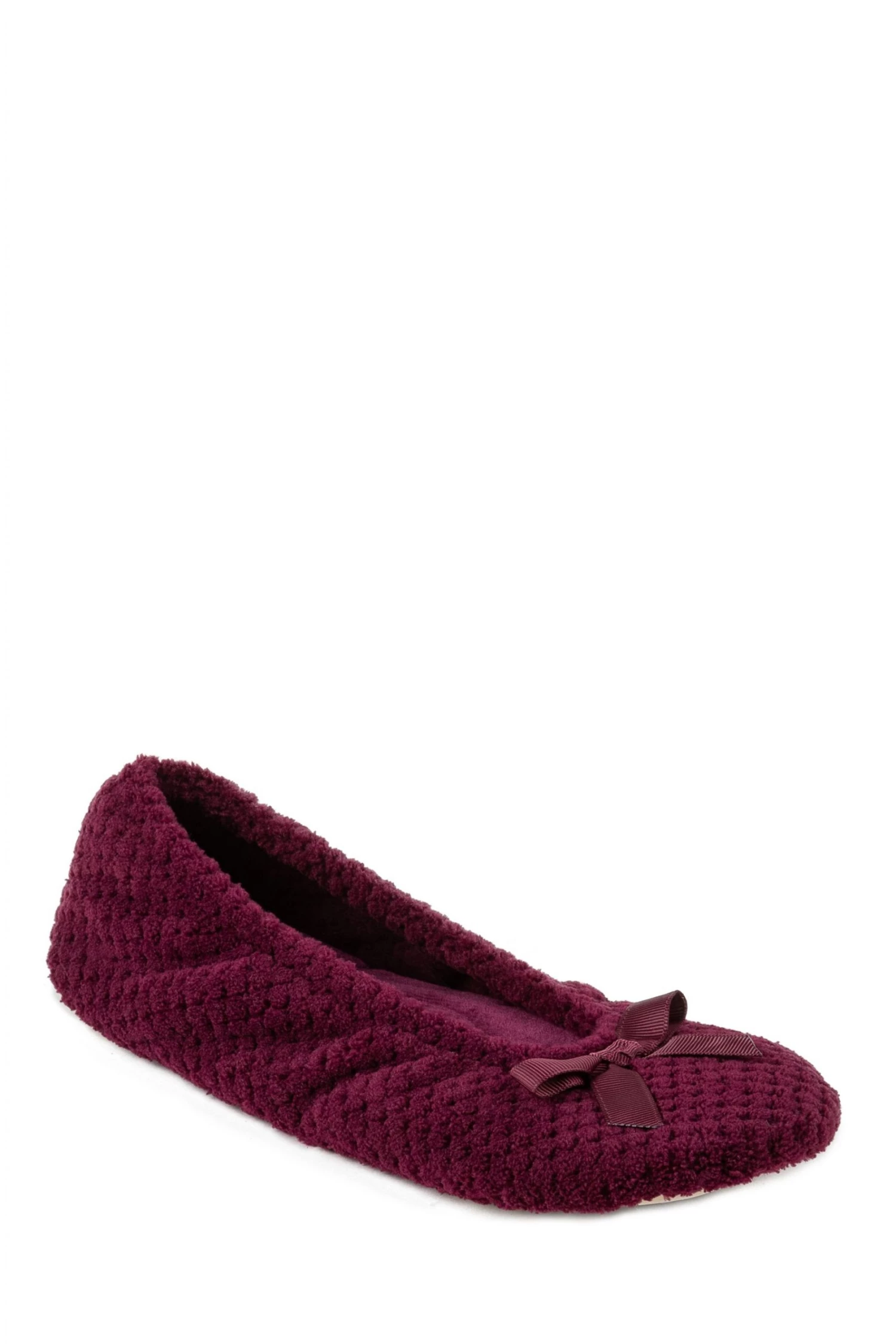 Our Isotoner Ladies Popcorn Ballet Slippers featuring our Pillowstepâ„¢ tufted insole with Ultra Comfort Foam Layers for added comfort, Soft Synthetic Suede Sole. Perfect for indoors!