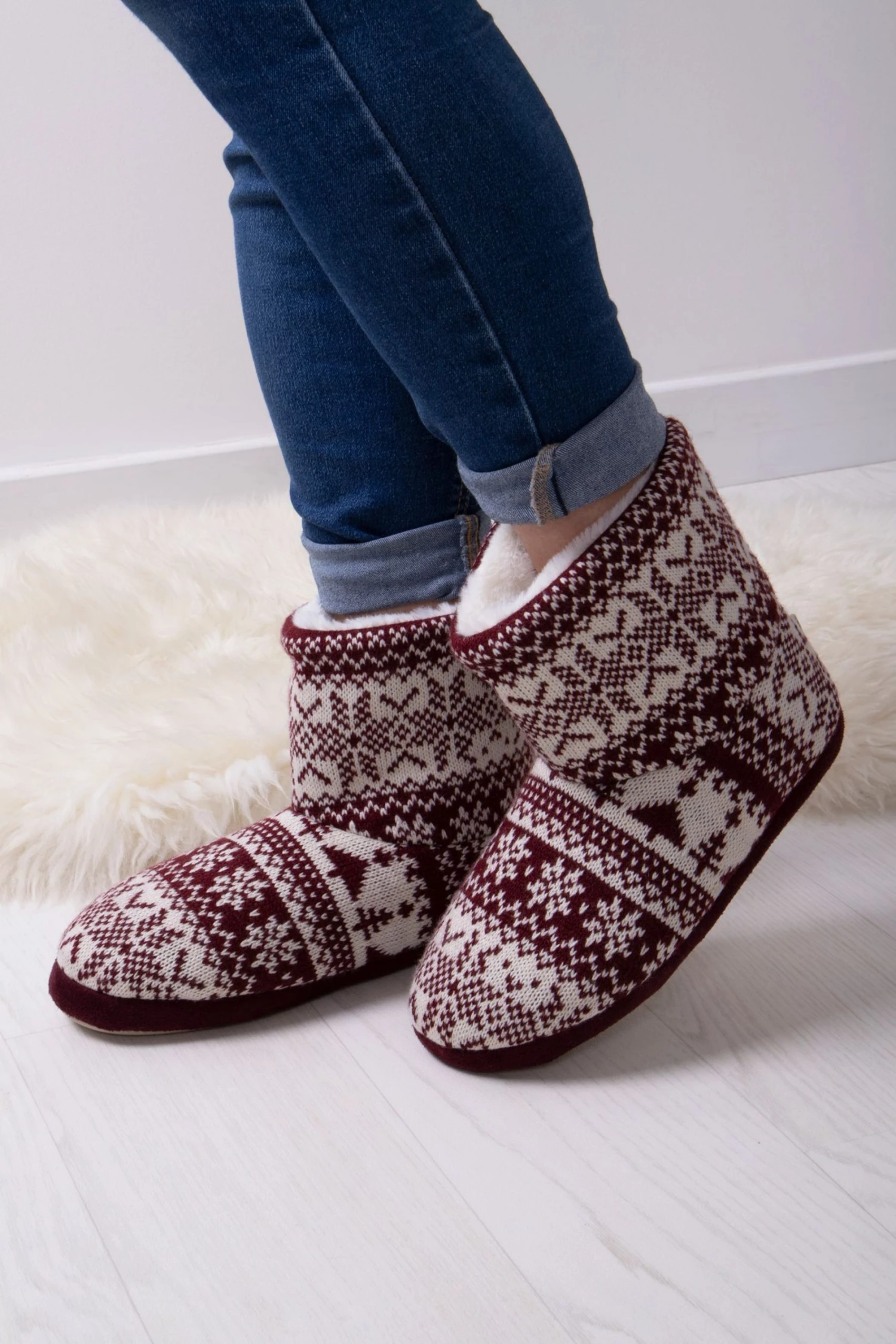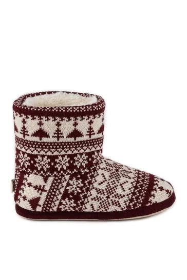 Our totes ladies Fair Isle Boot Slipper comes with a Multicolour Berry Design with Faux Fur Lining and Memory Foam, creating a Warm & Cosy Design with a Durable Sole.